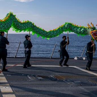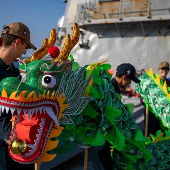 9月1日,美国海军公开了在日本海,美国海军拉尔夫·约翰逊号驱逐舰的官兵,正在舞龙。而美国海军官兵舞龙,举起的龙不是中国龙,而是越南龙。这是因为,美国海军拉尔夫·约翰逊号驱逐舰,其命名来源于美国海军陆战队官兵,拉尔夫·约翰逊:拉尔夫·约翰逊在越南战争的作战表现,被命名为美国海军驱逐舰的名字,随后美国海军拉尔夫·约翰逊号驱逐舰的舰徽,也选择了越南绿色龙。越南龙文化在许多地方都与中国龙文化有着同源关系。在越南文化中,龙是想象中的神物里综合性最强的,包括了蛇,鳄鱼,鹿、鱼、鸟、虎等。所以与中国龙,还是有一定的诧异的,特别是,中国舞龙,哪有绿色的,这么扎眼的颜色,绿色也就是越南人喜爱。